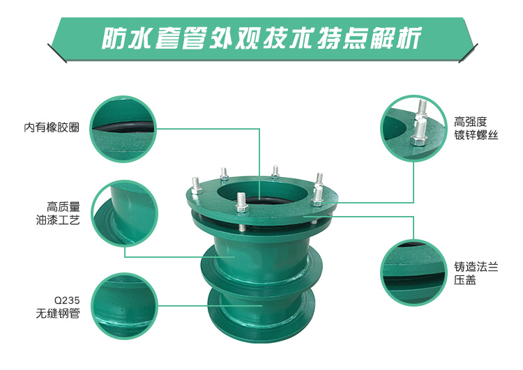 一般在做水池的時候要用到套管,它是管道通向水池的通道。但是普通的套管很難密封,以致套管與管道之間會有漏水、套管與墻壁之間也易漏水。只用防水套管,可以解決套管與墻壁之間的漏水,但不能解決套管與管道之間的密封,柔性防水套管正好可以解決兩種問題。